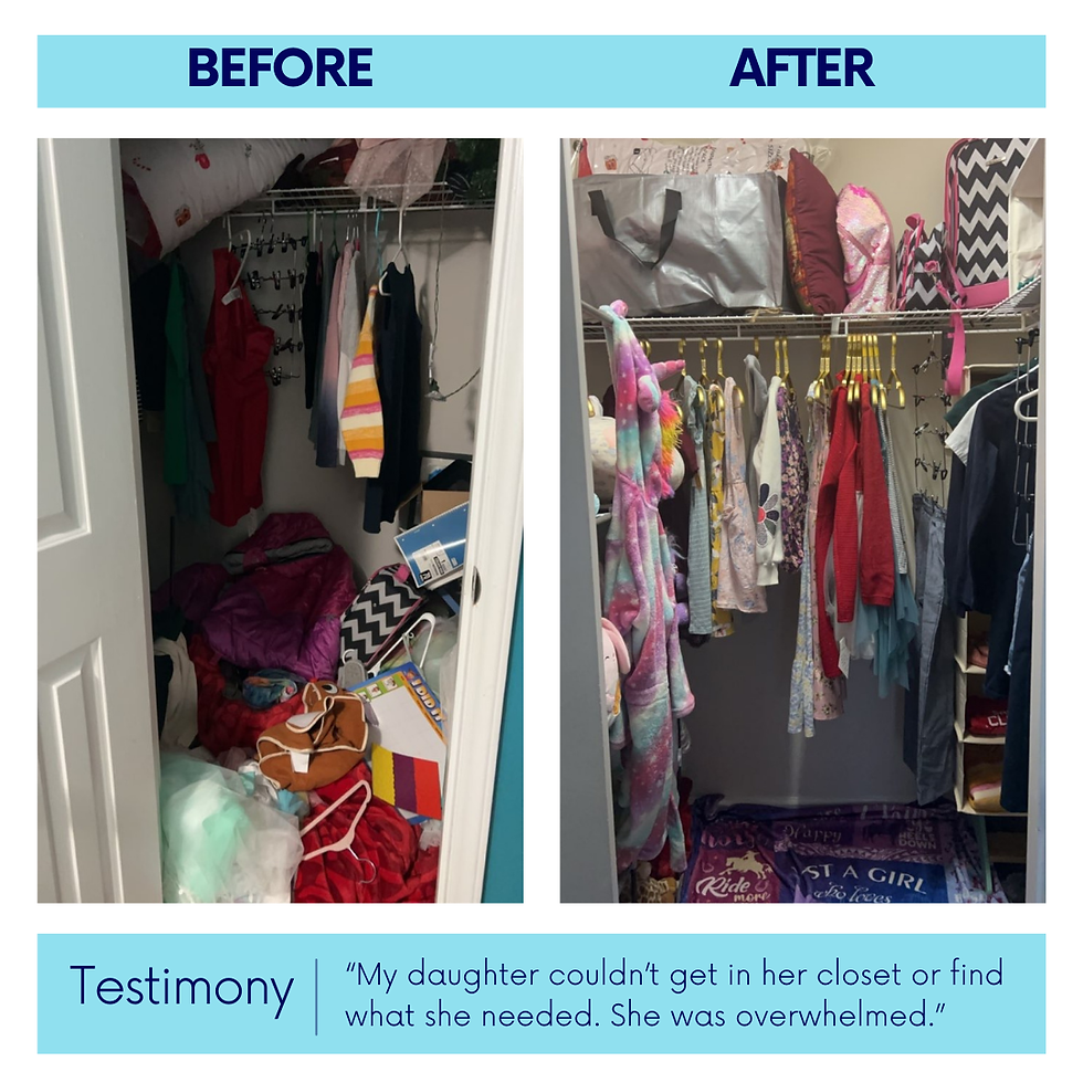 I worked with a client on her daughter’s closet and over time it had turned into more of a stuffing space.